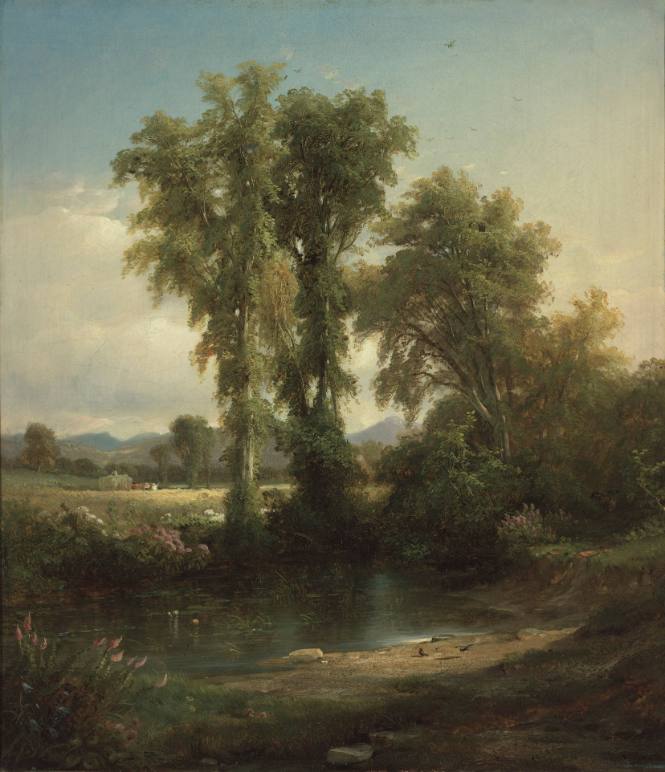 The younger Colman wasted little time establishing himself in the artistic circles of mid-century New York. He exhibited at the National Academy of Design for the first time in 18517 and by 1854 he was already an Associate Member.8 Among his friends were noted artists such as James David Smillie, Sanford Robinson Gifford, and Aaron Draper Shattuck, who went on to marry Colman’s younger sister Marian.9 Colman was also well acquainted with Asher B. Durand, the elder statesman of the New York scene, and painted alongside him on at least one trip to the White Mountains.10 Colman’s earliest works bear a strong resemblance to Durand’s.
